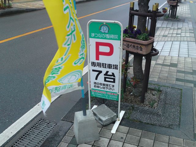 上記は、福津市で広い駐車場完備のまつなが整骨院さんの看板の写真です。クリックすれば拡大表示しますので、わかりやすいと思います。